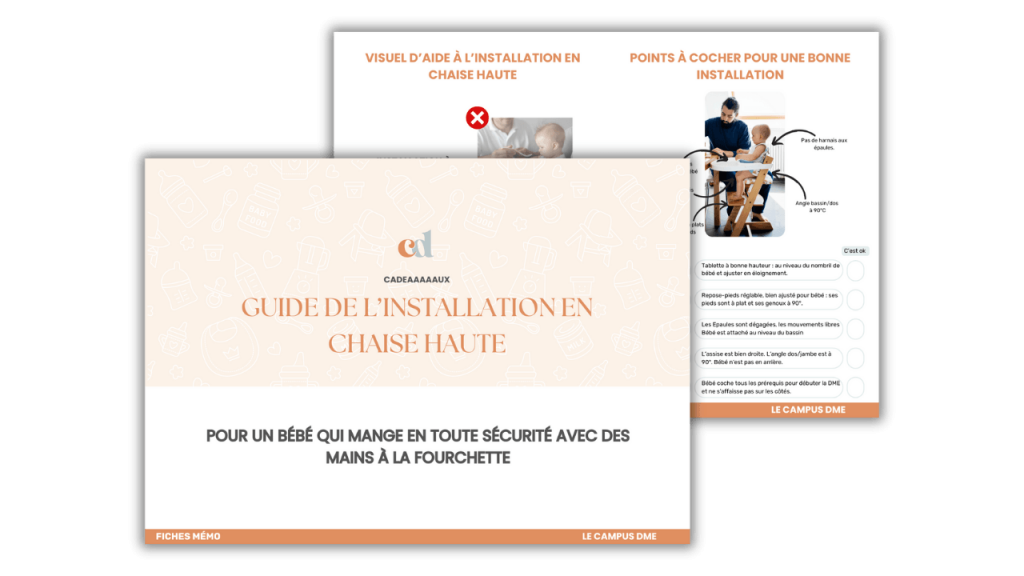 Pour suivre les étapes pour une bonne installation en chaise haute et pour avoir le schéma précis de l’installation sécuritaire pour que votre bébé mange en toute sécurité